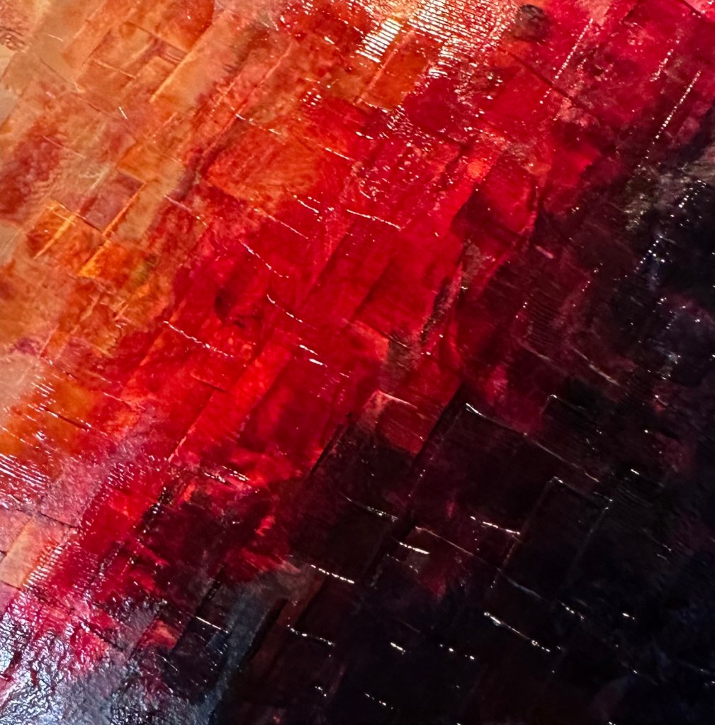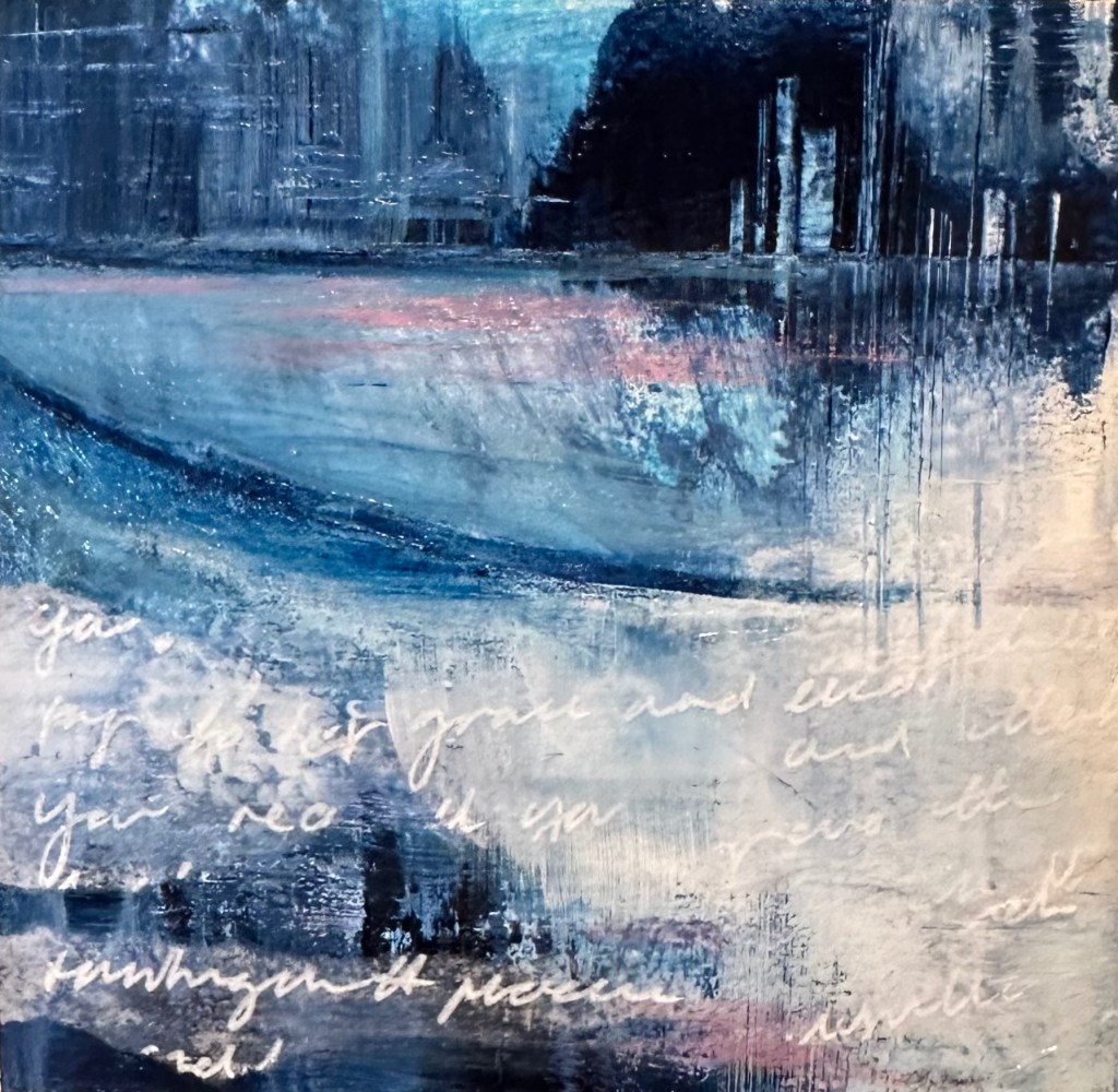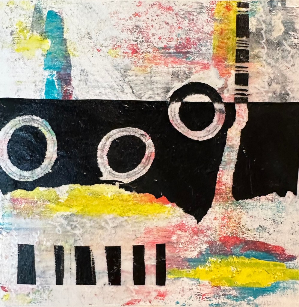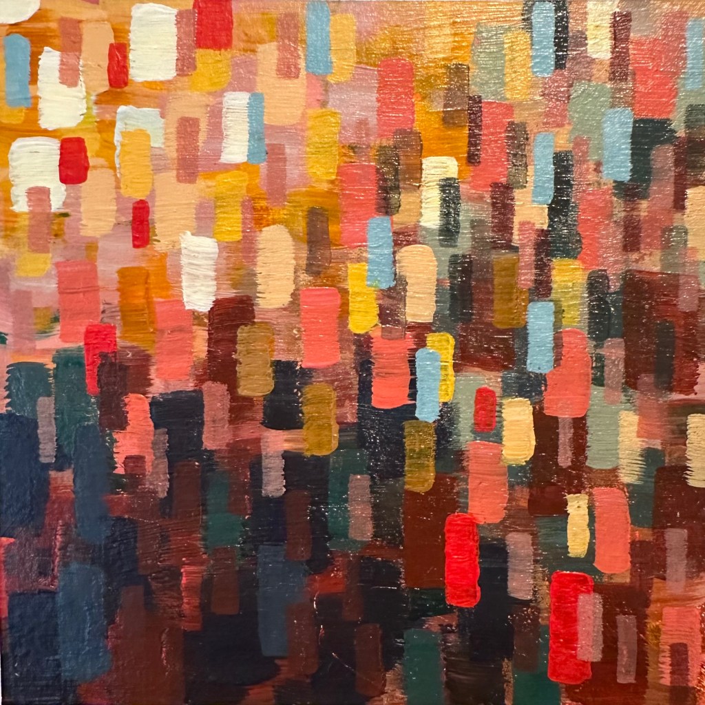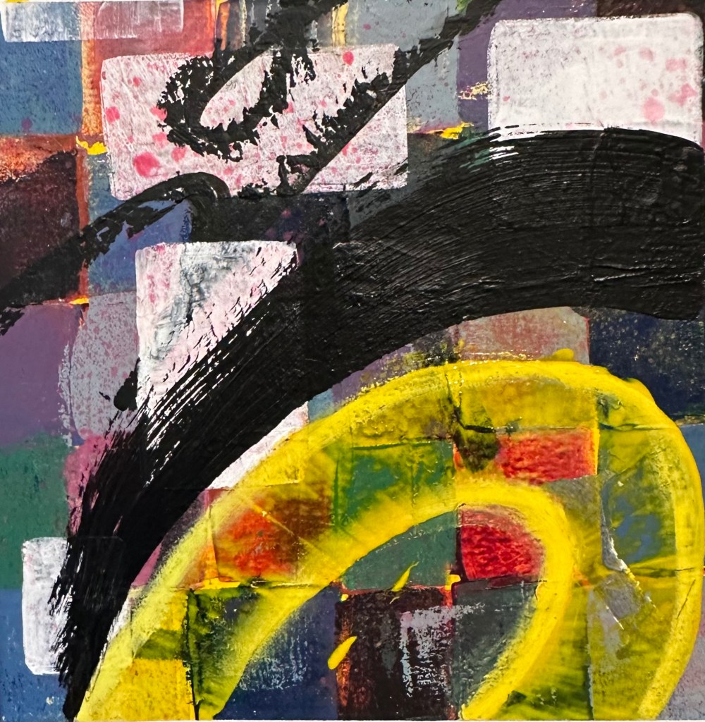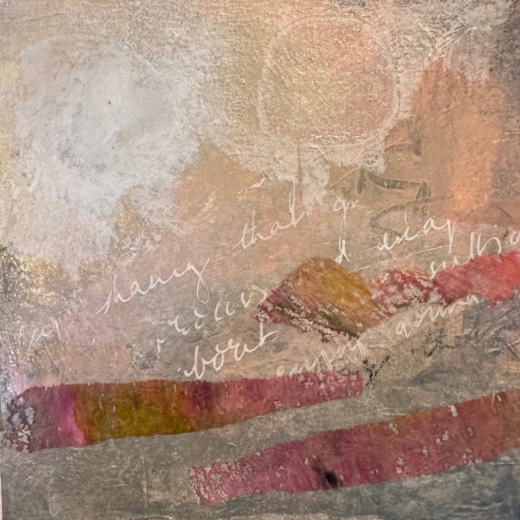 These small 4.5×4.5″ playful pieces are part of an exploration in color, texture and technique in mixed media and collage. They have been a joy to create. They add a splash of intrigue and color to any small space.